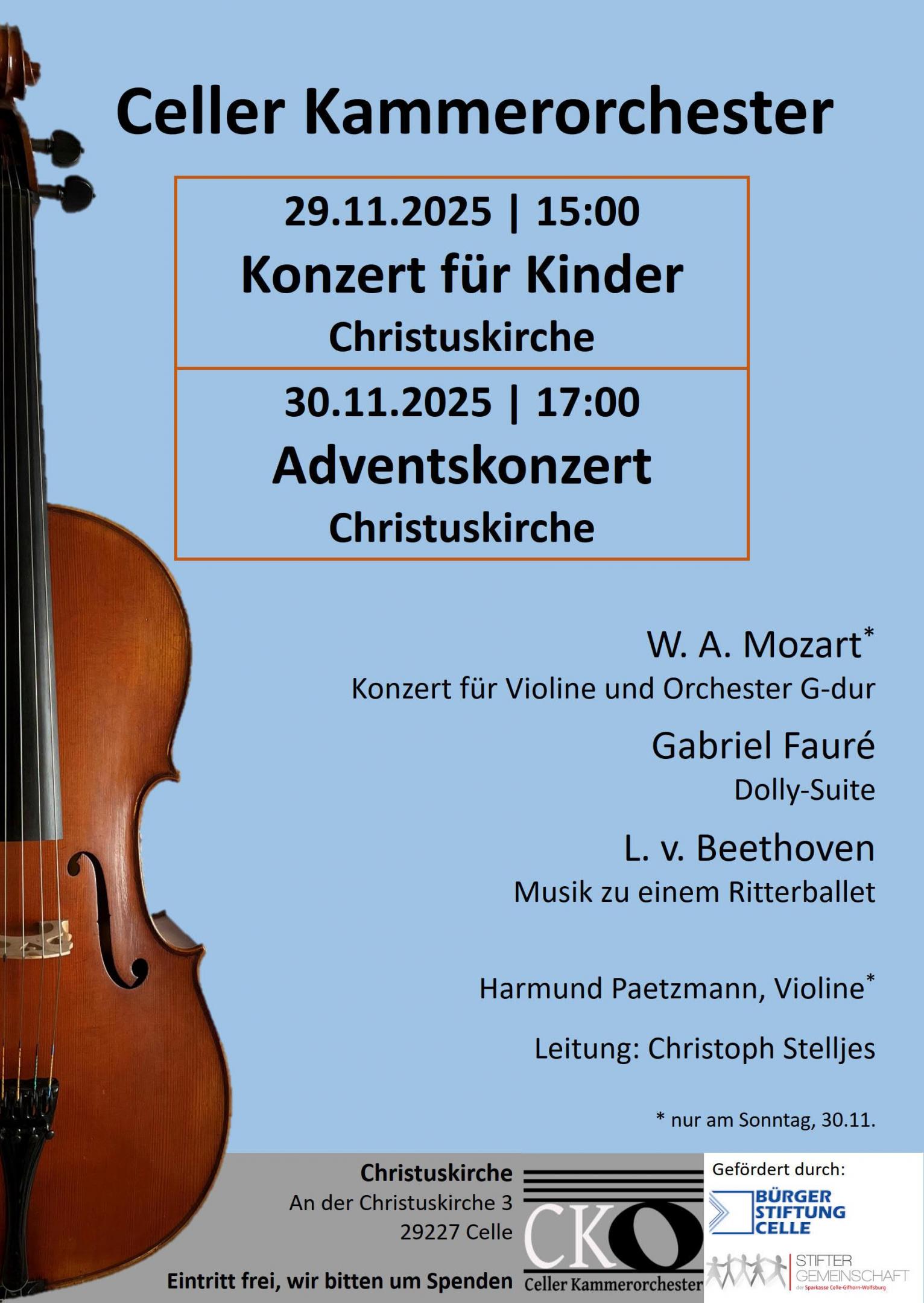 Seit 2019 leitet Christoph Stelljes das Celler Kammerorchester. Bereits während der Schulzeit spielte er als Trompeter in unterschiedlichen Orchestern und Bands und war mehrfach Preisträger verschiedener Kompositionswettbewerbe. Musikalischer Schwerpunkt seines Lehramtsstudiums war zunächst die Trompete, später Komposition. Gleichzeitig sang und singt er in verschiedenen Chören, unter anderem im Johannes-Brahms-Chor Hannover mit. Christoph Stelljes arbeitet als Musik- und Geschichtslehrer am Gymnasium Ernestinum in Celle und leitet dort auch weitere Schüler-Musikgruppen.
